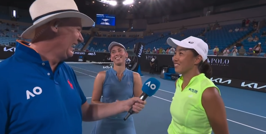而今天她们站上的玛格丽特·考特球场对于张帅来说有着非凡的意义,特别是赛后那位熟悉的主持人出现时,无数回忆涌现在帅姐的脑海中,那是一场拯救了她职业生涯的比赛...